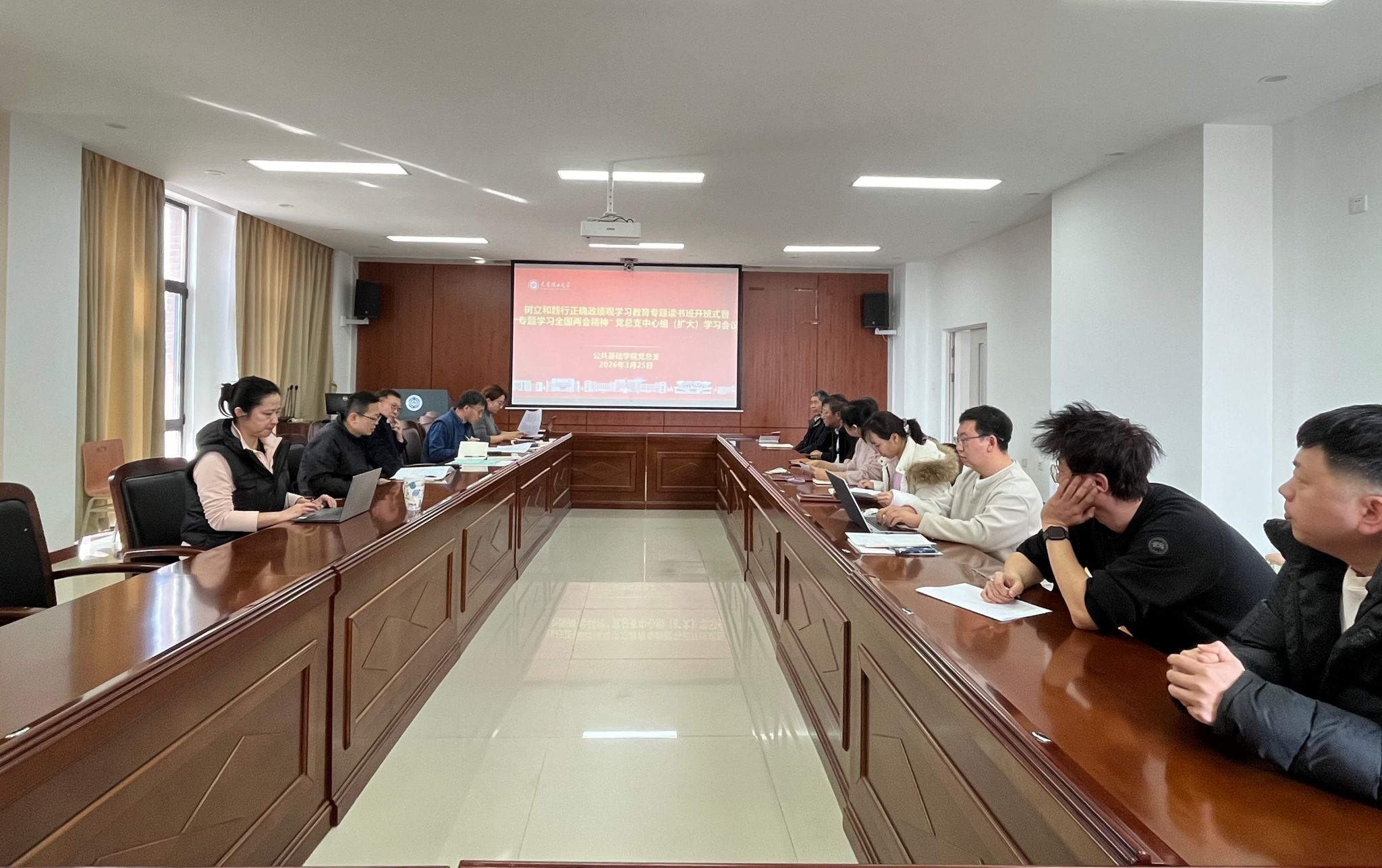 3月25日下午,公共基础学院党总支在C05-201会议室召开理论学习中心组学习(扩大)会暨树立和践行正确政绩观学习教育专题读书班开班式。学院领导班子成员、七级管理岗、基层党支部书记和教研室(中心)负责人参加学习。会议由学院党总支副书记兼副院长李刚主持。